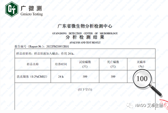 經(jīng)測試,在含有0.2%凈螨易的洗衣凝珠配方中,除螨率為100%